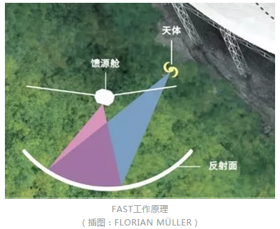 它拥有30个标准足球场大的接收面积,悬挂在70根支撑柱上,一个30吨重的馈源舱位于天眼的中心。