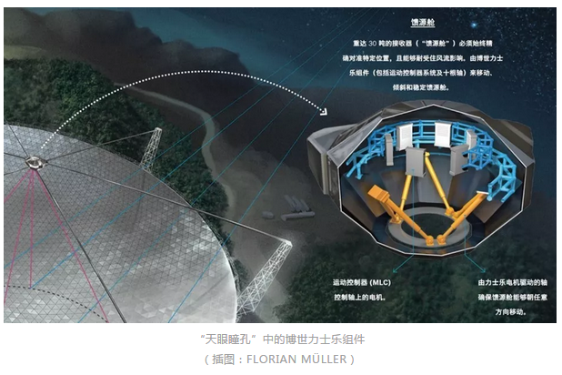 馈源舱装备了运动-逻辑系统IndraMotion MLC 和十个伺服运动轴,实现了馈源仓的精准定位