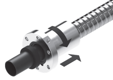提示: 在带前置润滑单元的滚珠丝杠传动系统时,不从丝杠上旋出螺母和前置润滑单元。