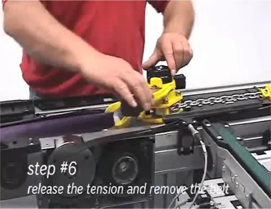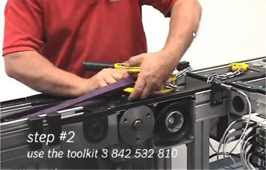第一步:安装皮带工装,用于皮带锁紧
