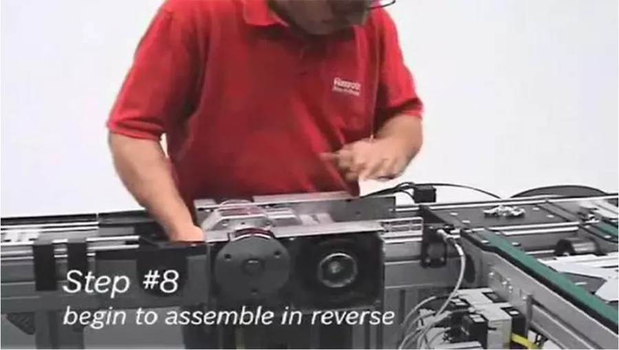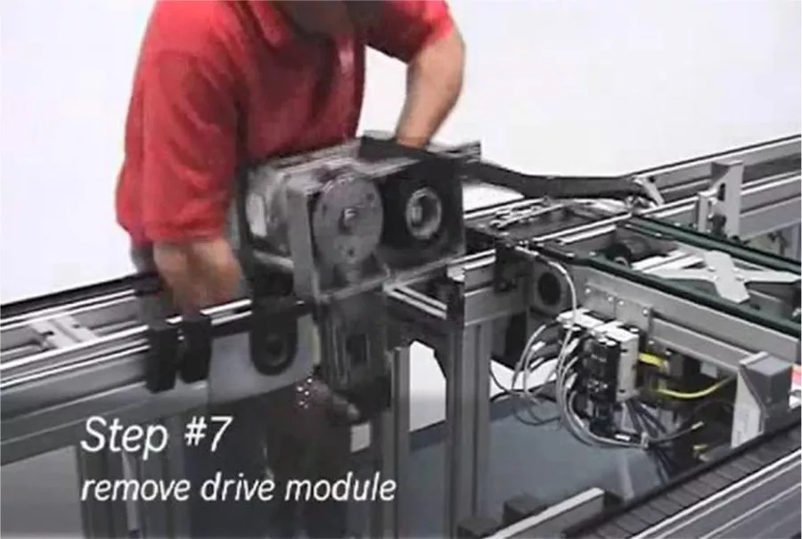 TS2 平皮带线的驱动头更换共分为8步,最终可以顺利的将平皮带的驱动单元完全更换。