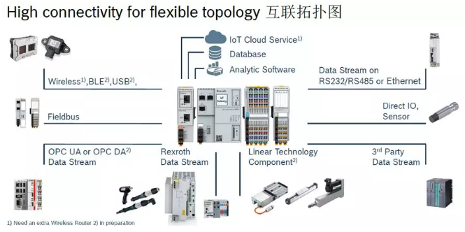 随着工业互联的兴起,用户对设备的数据采集迫切需求,拥有开放的软件架构平台(Java OSGI) 的博世力士乐的工业智能网关将通过三步轻松配置,实现新旧设备的互联及管理。结合数据分析软件,提高产品质量,改善工艺流程,提高设备利用率。