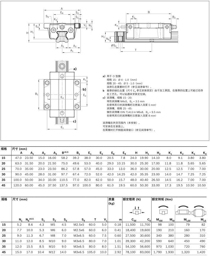 力士乐滚珠导轨导向系统BSCL系列 FNS 法兰型 标准长 标准高 R205A...2.