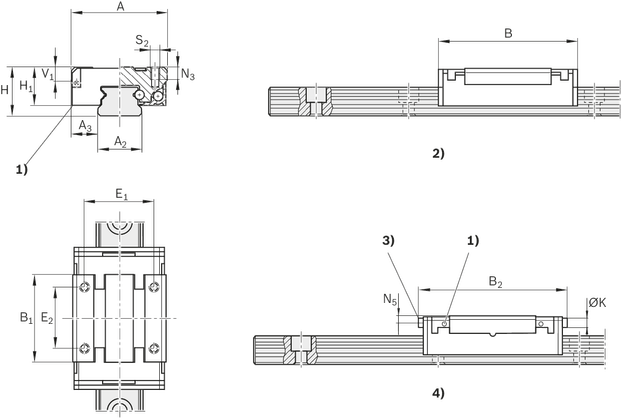 力士乐微型滚珠滑块标准SNSR0442由于使用了最大滚珠规格,因此在所有载荷方向上均具有高载荷,包括所有轴周围的转矩。