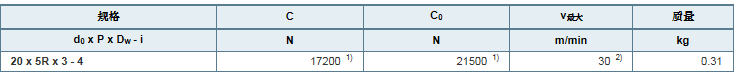 1)额定载荷仅对公差等级为 T3 和 T5 的有效。对于其它公差等级,请注意校正系数 fac (见通用技术说明和信息,“技术数据”,技术说明)。